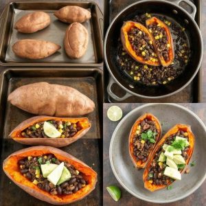 Bakt søtpotet med fyll har vært en redning på travle dager. Jeg elsker hvordan jeg kan eksperimentere med fyllet – noen ganger bruker jeg quinoa eller kikertsalat i stedet for bønner. Et godt tips er å bake søtpotetene litt lengre for en karamellisert sødme som er helt uimotståelig. Jeg husker spesielt en vennemiddag der alle fikk velge sitt eget fyll. Det var en suksess!