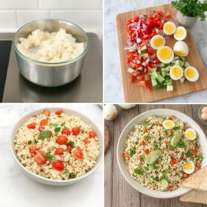 Bulgursalat er en rett med røtter i det østlige Middelhavet, kjent for sin evne til å kombinere sunne ingredienser med smakfulle krydder. Denne moderne versjonen med egg bringer inn en kremet og mettende komponent som gjør retten enda mer balansert. Jeg oppdaget denne salaten første gang på en sommersammenkomst, og jeg ble umiddelbart forelsket i hvordan de lune, nøtteaktige tonene fra bulgur harmonerte med de kremete eggene og friske grønnsakene. Siden den gang har dette blitt min favoritt når jeg ønsker noe sunt, smakfullt og enkelt å lage.