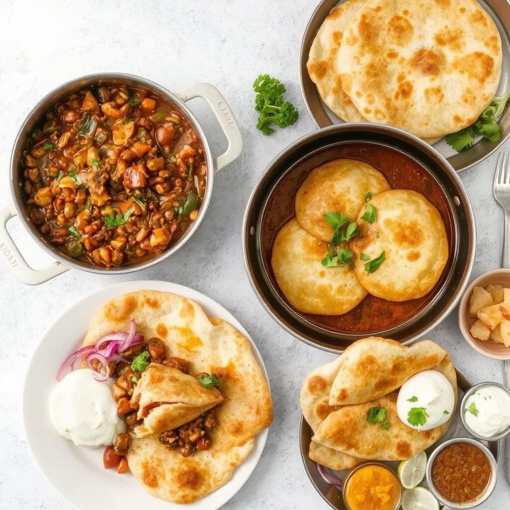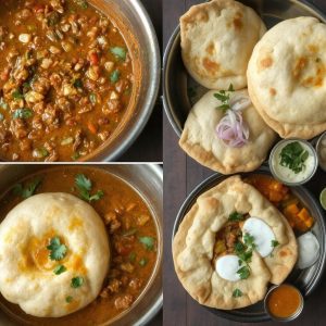 Chole Bhature er en elsket rett fra Punjab-regionen i Nord-India. Den kombinerer chole (krydret kikertkarri) med bhature (et luftig, friteret brød). Retten er ofte servert som en kraftig frokost, lunsj eller en festmåltid på spesielle anledninger. Den stammer fra indiske gatematscener og er kjent for sin rike smak og mettende natur. Jeg elsker Chole Bhature for den perfekte kombinasjonen av krydret karri og sprøtt, gyllent brød – en rett som tilfredsstiller både smaksløkene og magen!