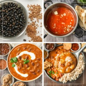 Dal Makhani er en klassisk rett fra Punjab-regionen i Nord-India, kjent for sin luksuriøse smak og rike tekstur. “Dal” betyr linser, og “Makhani” refererer til smør, noe som gjenspeiler rettens kremete og smøraktige natur. Den lages med svarte linser (urad dal) og noen ganger med bønner (rajma), som kokes sakte med tomater, fløte og aromatiske krydder. Dal Makhani er en favoritt ved festlige anledninger og spesielle middager. Jeg elsker denne retten for dens dybde i smak og trøstende konsistens.