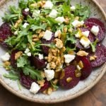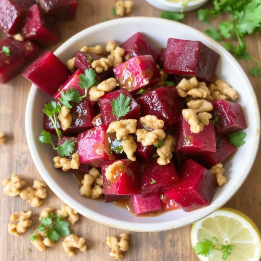 Denne rødbetesalaten har en perfekt balanse mellom rødbetenes sødme og rømmedressingens kremete friskhet. Den sprø teksturen fra nøtter eller frø gir en deilig kontrast til de myke rødbetene. Jeg elsker hvordan hver bit smaker naturlig og tilfredsstillende.