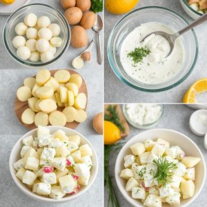 Kort Historie: Potetsalat er en rett som har sin opprinnelse i Europa og har blitt en favoritt i Norge. Den norske versjonen med rømme er lett, frisk og perfekt til sommermåltider. Denne salaten er en klassiker på grillfester og koldtbord. Jeg elsker hvordan den enkle kombinasjonen av poteter og rømme løfter smaken til noe helt spesielt.