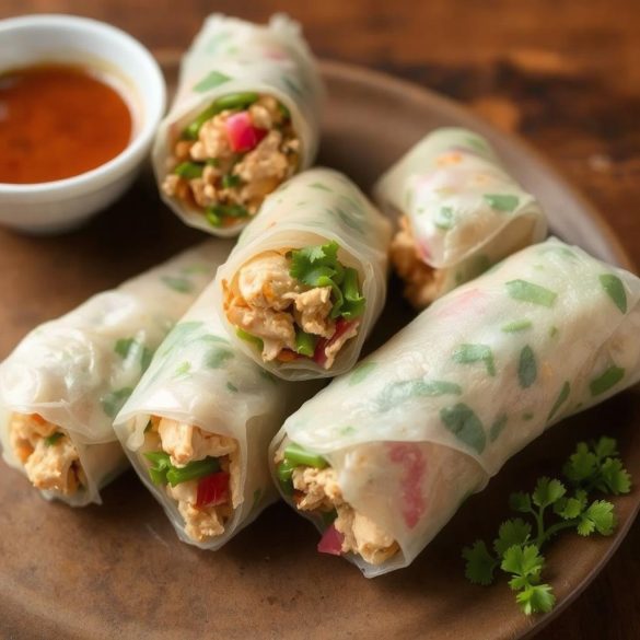 Teksturen: Mykheten i rispapiret er den perfekte innpakningen for de sprø grønnsakene og saftige kyllingbitene, mens urtene gir en lett aromatisk kontrast. Hver bit er en kombinasjon av knas og saftighet.