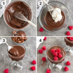 Denne sjokolademoussen er min go-to dessert når jeg vil lage noe imponerende uten for mye arbeid. Den krever få ingredienser og minimal innsats, men imponerer alltid gjestene mine. Jeg husker godt en kveld da jeg serverte den til venninnene mine, og alle ble overrasket over hvor luftig og smakfull den var – selv uten raffinert sukker. Noen ganger tilsetter jeg revet appelsinskall eller en skvett espresso for en ekstra smaksvri. For meg er det aller beste å nyte denne desserten med en kopp sterk kaffe og noen ekstra bær på siden.