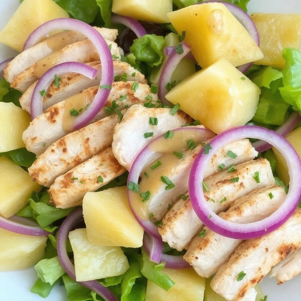 Jeg laget denne ananas- og kyllingsalaten første gang da jeg ønsket en sunn middag som skulle være både smakfull og lett. Etter å ha eksperimentert med ulike ingredienser, falt jeg for kombinasjonen av saftig kylling og den søte, tropiske smaken av ananas. Dressingen, som består av honning og sennep, binder retten sammen på en perfekt måte og gir den en deilig balanse. Denne retten har raskt blitt en favoritt i huset mitt, og jeg elsker hvordan den både er enkel å lage og full av smak. Den passer perfekt på varme dager eller når jeg ønsker noe lett og næringsrikt.