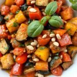 Jeg lager ofte denne retten når jeg vil ha noe lett, men samtidig smakfullt og fargerikt. Den passer perfekt til varme sommerdager, men jeg synes den også fungerer godt på høsten, når jeg trenger et friskt innslag til middagsbordet. En gang serverte jeg den til en venninne som var skeptisk til aubergine, men hun ble raskt overbevist. Nå er dette en av hennes favoritter. Jeg varierer ofte ingrediensene etter hva jeg har i kjøleskapet. Noen ganger bruker jeg ristede solsikkefrø i stedet for pinjekjerner, eller jeg tilsetter litt ovnsbakt paprika for ekstra sødme.