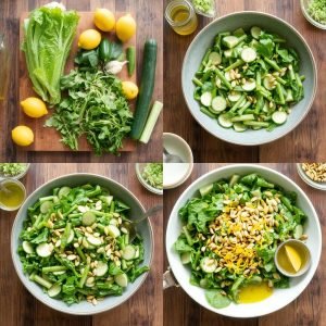 Denne salaten er en kombinasjon av friskhet, sprøhet og kremet fylde fra dressingen. De sprø salatbladene, saftige agurkskivene og sukkererter gir en tilfredsstillende crunch i hver bit. Den syrlige sitrondressingen balanseres med et hint av sødme fra honning og en silkemyk konsistens fra olivenoljen. Gresskarkjernene tilfører en nøtteaktig smak som harmonerer perfekt med de friske grønnsakene. Duften av nyrevet sitronskall gir en oppfriskende aroma som frister sansene. Hver bit føles som en smak av sommer – lett, balansert og full av naturlige smaker.