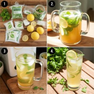 Denne teen er som en frisk bris i glass. Smaken er delikat – den milde grønnteen gir et urteaktig bakteppe, sitronen løfter smaken med syrlig friskhet, og mynten gir den kjølige avslutningen jeg elsker. Jeg kjenner hvordan teen renser og kjøler ned kroppen på varme dager. Konsistensen er klar og lett, uten kullsyre eller fylde – akkurat det jeg vil ha når jeg trenger noe forfriskende. Litt søtning gjør den rund og behagelig, men jeg passer alltid på å holde det naturlig og lett. Isbitene og urtene gjør den også vakker å se på – nesten som en sommersalat i flytende form!
