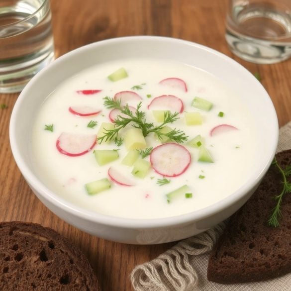Okroshka er en tradisjonell, kald suppe fra det russiske kjøkkenet, perfekt for varme sommerdager. Denne sunne versjonen kombinerer kremet kefir med en blanding av ferske grønnsaker og urter, og gir en lett og næringsrik rett som både forfrisker og metter.