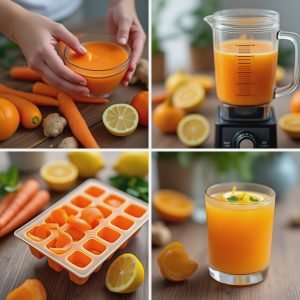 Jeg husker første gang jeg smakte kald gulrotjuice – det var i en liten juicebar i Berlin en sommerferie. Den hadde en gyllen farge, og smaken var både søt, syrlig og så frisk! Jeg tok ideen med hjem og begynte å eksperimentere på mitt eget kjøkken. Etter noen runder med prøving og feiling, landet jeg på en kombinasjon av ferskpresset appelsin, søt gulrot og en liten dæsj ingefær for varme. Når jeg fryser den i isbitform og serverer som slush, blir det en perfekt drikk for varme dager – eller når jeg bare trenger litt ekstra energi.
