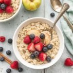Havregrøten har en myk og kremet tekstur, takket være havregrynene som absorberer væsken og skaper en jevn og tilfredsstillende konsistens. Eplene tilfører en naturlig sødme, og den varme kanelen gir en krydret og innbydende aroma. Grøten er lett å spise, og den balanserer godt den milde smaken av havre med fruktens friskhet. For meg er det en perfekt kombinasjon av smak og tekstur – varm og mettende, men samtidig frisk og lett.