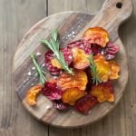 Server rødbetefritterne varme med dippen ved siden av. Perfekt som en smårett eller tilbehør til middag.