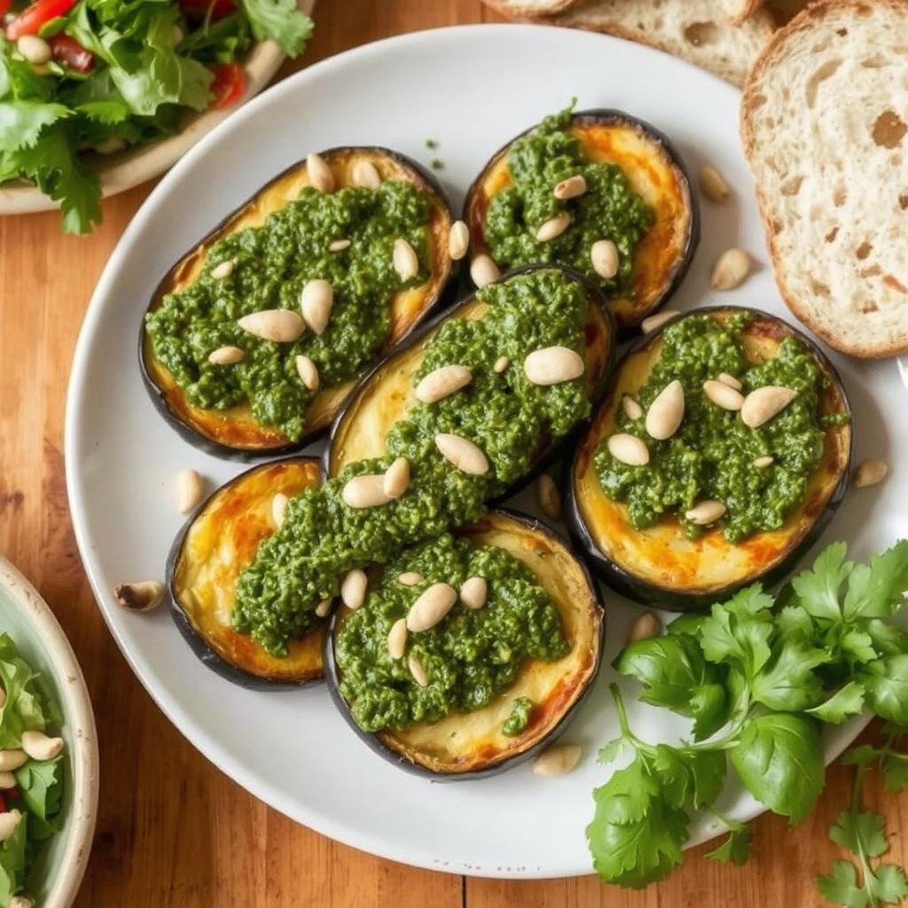 - Montering: Legg aubergineskivene på et fat og topp med den friske pestoen. Server med en frisk salat og grovt brød eller quinoa for et fullverdig måltid.
