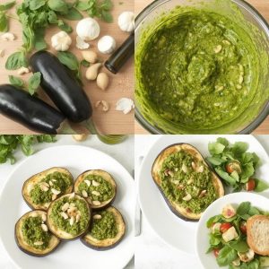 Retten kombinerer den myke auberginen med den intense smaken av pesto. Når auberginen stekes, blir den nesten kremet i konsistensen og trekker til seg pestoens rike smaker. I tillegg gir pinjekjernene en fin kontrast med sin sprø tekstur. Sammen skaper de en fantastisk balansert rett. Jeg synes at den lette smaken av pestoen er den perfekte motvekten til auberginens mildhet, og resultatet blir en herlig kombinasjon av smaker og teksturer.
