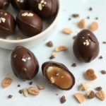 Sjokoladeegg har vært en del av påsketradisjonen i over 200 år. Opprinnelig ble de laget som en luksusvare av sjokoladeprodusenter i Europa, og de var ofte fylt med små overraskelser eller kremfylte godsaker. Etter hvert har de blitt et fast innslag i påsken, både i butikkhyllene og på kjøkkenbenken. Jeg elsker å lage mine egne sjokoladeegg, særlig fordi jeg da kan bruke rene, naturlige ingredienser og lage en sunnere versjon. Disse er fylt med en myk karamell laget av dadler og kokosmelk, noe som gir en naturlig sødme og en silkemyk konsistens. Perfekte å nyte med god samvittighet!