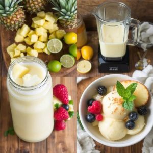Ananas er en favoritt i tropiske desserter. Den gir naturlig sødme og syrlighet, noe som gjør den perfekt i sorbet. Jeg lager denne uten raffinert sukker og bruker honning eller lønnesirup i stedet. Kokosmelk gir en kremet konsistens, mens limejuice fremhever friskheten. Dette er en lett dessert som passer perfekt på varme dager.