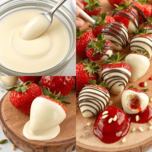 Denne desserten er en perfekt balanse mellom det søte, det friske og det kremete. Den hvite sjokoladen smelter silkemykt på tungen, mens de friske jordbærene gir en lett syrlig kontrast som gjør smaken både balansert og lett. Hvis jeg vil ha litt mer dybde, tilsetter jeg en klype havsalt i sjokoladen eller drysser over ristede nøtter for ekstra tekstur. Jeg liker også å variere med et tynt lag mørk sjokolade over hvitsjokoladen – det gir en nydelig balanse mellom det søte og det bitre. En liten klype kanel eller chili kan også gi et lite hint av varme for en ekstra spennende smak.