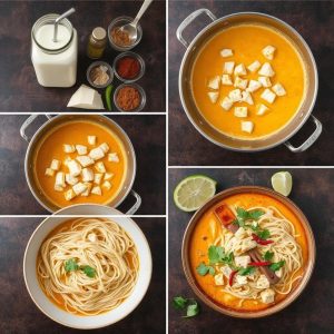 Jeg oppdaget Khao Soi under en ferie i Chiang Mai, og det var kjærlighet ved første bit. Nå lager jeg det hjemme som en luksusmiddag. Jeg anbefaler å bruke ferske eggnudler for den autentiske smaken, og om du vil eksperimentere, kan du prøve tofu eller reker som alternativ til kylling. Et tips er å tilpasse krydderet etter smak, spesielt om du serverer til barn. Sprø nudler kan enkelt lages ved å fritere noen av nudlene før koking – en detalj som gjør retten uimotståelig!