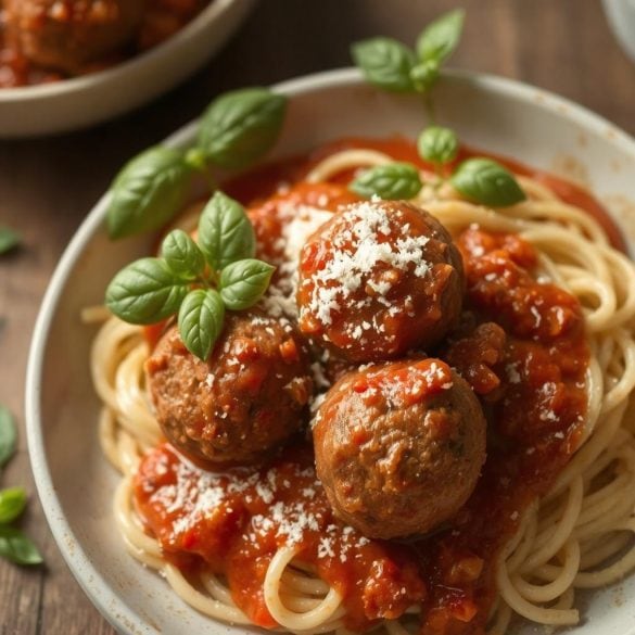 - Servering: Legg pastaen på tallerkenen, topp med kjøttboller og saus, og dryss over parmesan og basilikum.