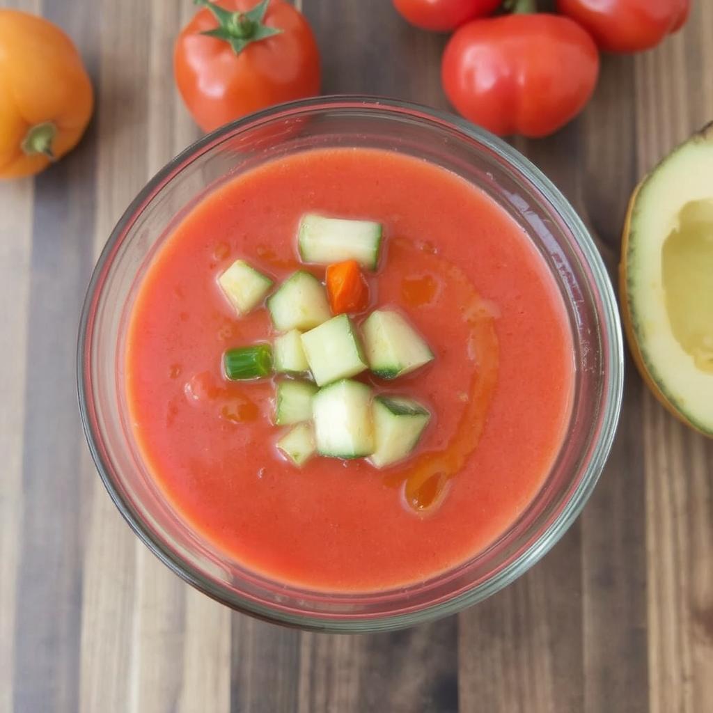 Gazpacho er en klassisk kald suppe fra Andalucía i Sør-Spania. Denne retten stammer fra en tid da varme, tørre somre krevde forfriskende og nærende mat laget av enkle ingredienser. Tradisjonelt ble gazpacho laget med brød, olivenolje, eddik og ferske grønnsaker som tomater, agurk og paprika. I dag er den kjent over hele verden som en avkjølende rett, perfekt for varme dager.