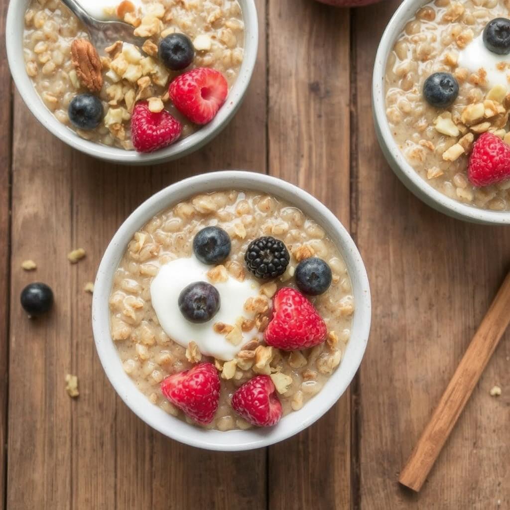 - Topp grøten med friske bær og hakkede nøtter for ekstra smak og tekstur.