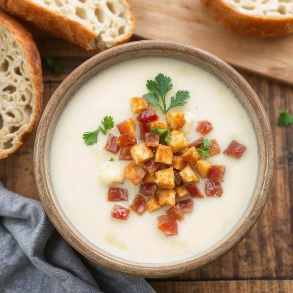 - Servering: Øs suppen i boller og topp med sprø bacon, krutonger og fersk persille.