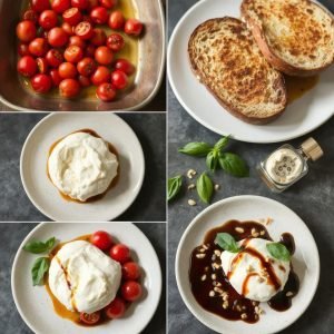 Jeg elsker å lage denne retten når jeg vil lage noe enkelt, men imponerende. Første gang jeg smakte burrata var på en liten italiensk restaurant, og jeg ble umiddelbart forelsket i den kremete konsistensen. Etter å ha prøvd ulike måter å servere den på, har jeg kommet frem til at ovnsbakte tomater og sprøtt brød er den perfekte kombinasjonen. Noen ganger varierer jeg retten med litt balsamicoglasur eller ristede pinjekjerner for ekstra smak. Denne retten har blitt en fast del av mine romantiske middager hjemme, gjerne servert med et glass hvitvin og tente lys for den ultimate stemningen.