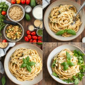 Jeg har laget denne retten mange ganger, og den er alltid en suksess. Et tips er å bruke næringsgjær i sausen for en “ostete” smak. Variér med forskjellige grønnsaker etter hva du har hjemme – paprika og brokkoli fungerer også bra.