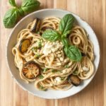 Denne retten er inspirert av middelhavskosten. Jeg oppdaget den da jeg lette etter en sunn og smakfull middag. Fullkornspasta med grillede grønnsaker ble raskt en favoritt. Aubergine og squash tilfører en røyksmak, og pastaen binder alt sammen. Jeg ble så glad i denne retten at jeg lager den jevnlig hjemme.