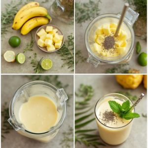 Smoothien smaker som solskinn i glass! Bananen gjør den silkemyk og naturlig søt, mens ananasen gir en herlig, saftig syrlighet. Kokosmelken runder av med fylde og et hint av tropisk aroma, nesten som dessert – bare sunnere. Når jeg bruker frossen frukt, blir den iskald og ekstra tykk, nesten som softis. Lime gir et friskt løft, og chiafrøene gir litt tekstur og metthetsfølelse. Den er både glatt og forfriskende, med en naturlig balanse mellom søtt og syrlig. Jeg kan helt ærlig si at jeg aldri blir lei denne!