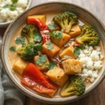 Denne gryten er en fryd for både smaksløkene og sansene. Den rike kokosmelksausen gir retten en kremet konsistens, mens krydder som spisskummen og gurkemeie tilfører varme og aromatiske undertoner. Tofuen, som er stekt til den er gyllen og sprø, gir en deilig kontrast til de myke grønnsakene. Jeg elsker hvordan brokkolien og paprikaen bevarer sin lett sprø tekstur, som gir retten en friskhet. Chiliflakene tilfører et hint av varme, men du kan tilpasse intensiteten etter smak. Det er en rett som balanserer fylde, friskhet og en mild krydret avslutning.