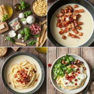 Jeg elsker å lage denne retten når jeg ønsker noe både raskt og smakfullt, men også litt mer lettvinn. Jeg husker da jeg først begynte å lage denne retten – jeg var på jakt etter en sunnere versjon av en klassisk pasta med bacon, og det ble en stor hit i familien! Jeg anbefaler alltid å bruke plantebasert fløte for en lettere saus uten at smaken går tapt. Jeg liker også å eksperimentere med krydder i sausen – for eksempel kan en liten dose muskatnøtt gi en ekstra dybde til smaken.
