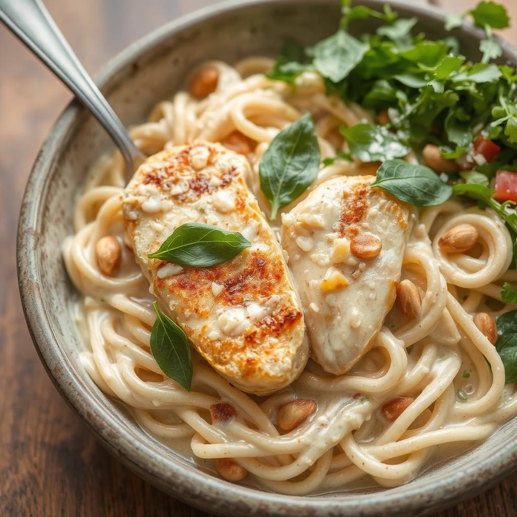 Denne retten er en drøm for ganen. Den silkemyke sausen smyger seg rundt pastaen og gir en rik, fyldig munnfølelse. Den saftige kyllingen tilfører proteinrik tyggemotstand, mens parmesanen bringer en dyp, salt umami-smak som løfter retten til et nytt nivå.