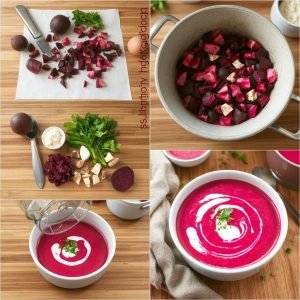 Kort Historie: Rødbetesuppe er en klassisk rett med røtter i Øst-Europa, kjent som borsjtsj i mange land. Denne kremede versjonen er en moderne variant som fokuserer på rødbetens naturlige sødme og intense farge. Jeg elsker hvordan fløten gir suppen en silkemyk tekstur som smelter i munnen, samtidig som den beholder rødbetens friske smak.