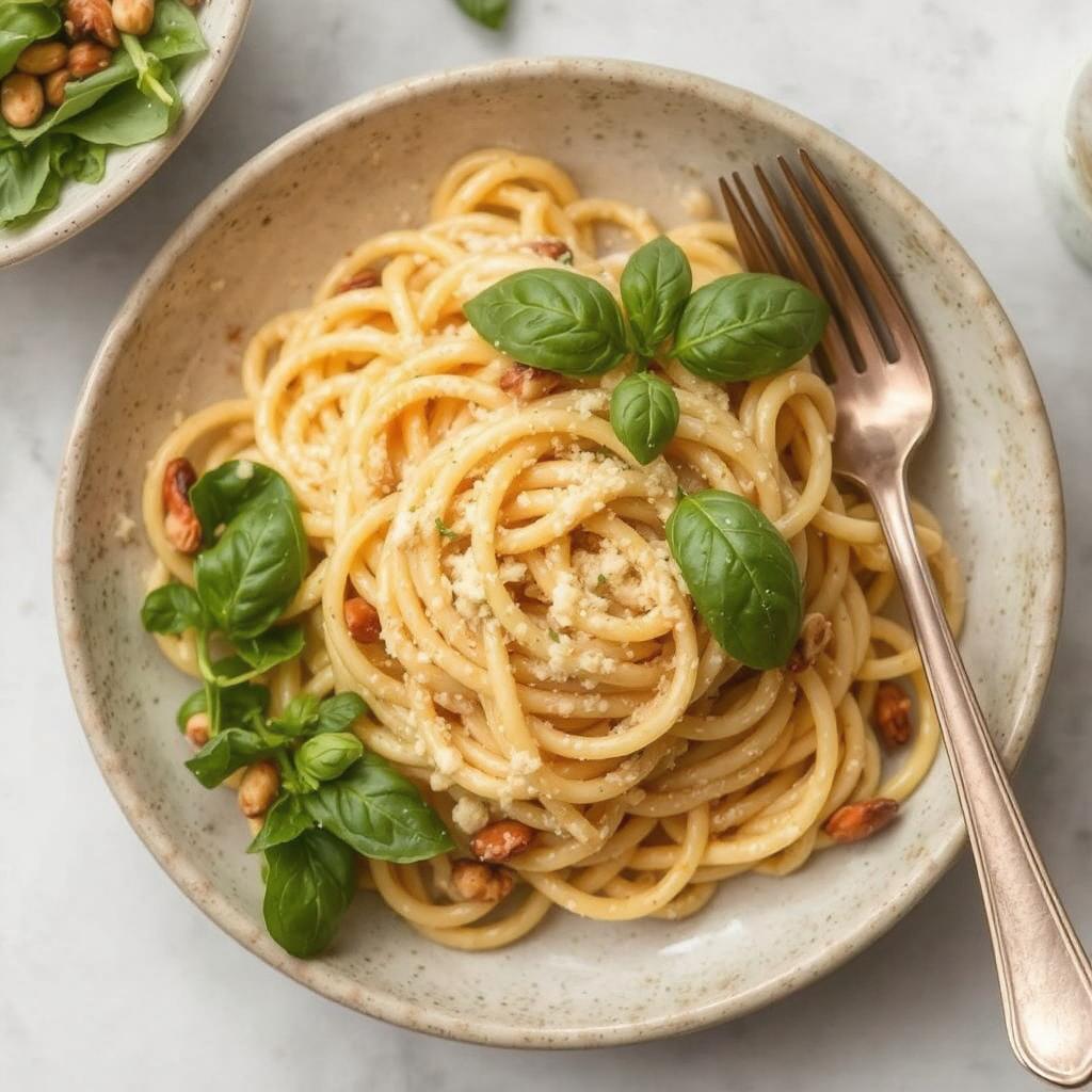 - Servering: Server pastaen på tallerkener og dryss over næringsgjær og frisk basilikum. Topp med ristede pinjekjerner eller valnøtter for ekstra tekstur og smak.