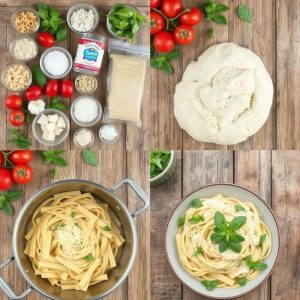 - Lag pastaen: Bland havremel, kikertmel og salt i en stor bolle. Tilsett olivenolje og litt vann, og bland til deigen er jevn og elastisk. Del deigen i små porsjoner og kjevle ut til ønsket tykkelse. Skjær pastaen i ønsket form (f.eks. tagliatelle eller pappardelle).