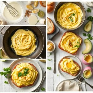 | Surdeigsbrød | Gir en sprø kontrast til den kremete eggerøren. |