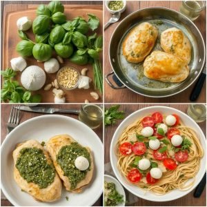 Denne retten byr på en saftig kyllingfilet som får et smakfullt løft av den fyldige, aromatiske pestoen. Hvis du topper med mozzarella, tilfører det en kremet og delikat tekstur som utfyller rettens friskhet fra tomater. Jeg elsker hvordan smakene balanserer hverandre perfekt i denne retten.