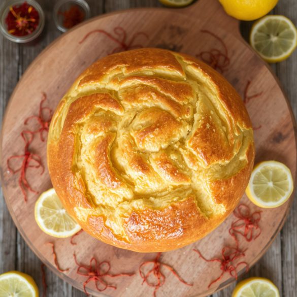 Duften av nystekt safranbrød fyller rommet med varme og feststemning. Den myke og luftige konsistensen gir en lett tyggemotstand, og smaken balanserer safranens rike dybde med en mild sødme fra honning. Den gyldne overflaten, lett sprø med en hint av karamellisering, gir brødet en fristende kontrast til den myke kjernen. Hver bit er en opplevelse av tekstur og smak som fyller munnen med en mild varme og sødme.
