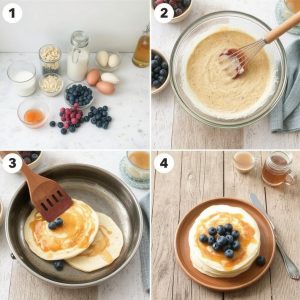 Havrepannekakene er myke og luftige, med en mild nøtteaktig smak fra havremelet. Et hint av kanel tilfører varme og dybde, og mandelmelken gir en kremet, rund tone. Når de stekes, får de en lett gyllen overflate som gir en delikat sprøhet, mens innsiden forblir luftig. Når pannekakene toppes med friske bær, tilfører det en herlig syrlighet som balanserer den myke sødmen i røren. Hver bit gir en kombinasjon av letthet og fylde, og det beste er hvordan de kan varieres med topping etter sesong.