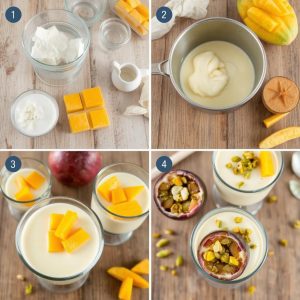 Det jeg elsker mest med denne desserten, er hvordan den balanserer kremete fylde med friskhet. Den silkemyke pannacottaen smelter i munnen, og den delikate sødmen fra kondensert melk balanseres perfekt av syrligheten fra pasjonsfrukten. Mangoen tilfører naturlig sødme og en tropisk tone, mens pistasjnøttene gir en herlig crunch som kontrast til den myke pannacottaen. Aromaen av vanilje, kombinert med fruktene, skaper en eksotisk og forførende duft. Det er som en liten reise til varmere strøk i hver eneste skje.