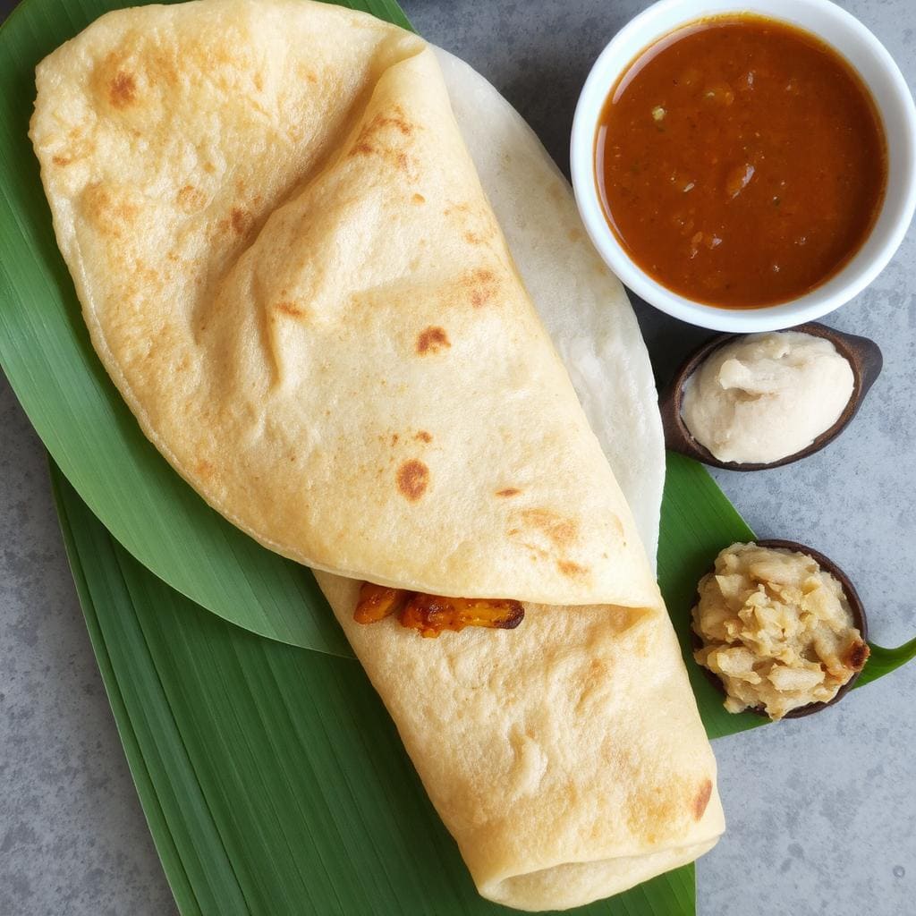 Masala Dosa er en ikonisk sørindisk rett som kombinerer en sprø pannekake laget av fermentert røre med en krydret potetfylling. Retten har sine røtter i Tamil Nadu, men har spredt seg til hele India og verden. Den er kjent for sin balanse mellom teksturer og smaker – den sprø dosaen og det myke, aromatiske potetfyllet. Jeg elsker Masala Dosa fordi den er både en tradisjonell frokostrett og et smakfullt måltid til alle tider på dagen.