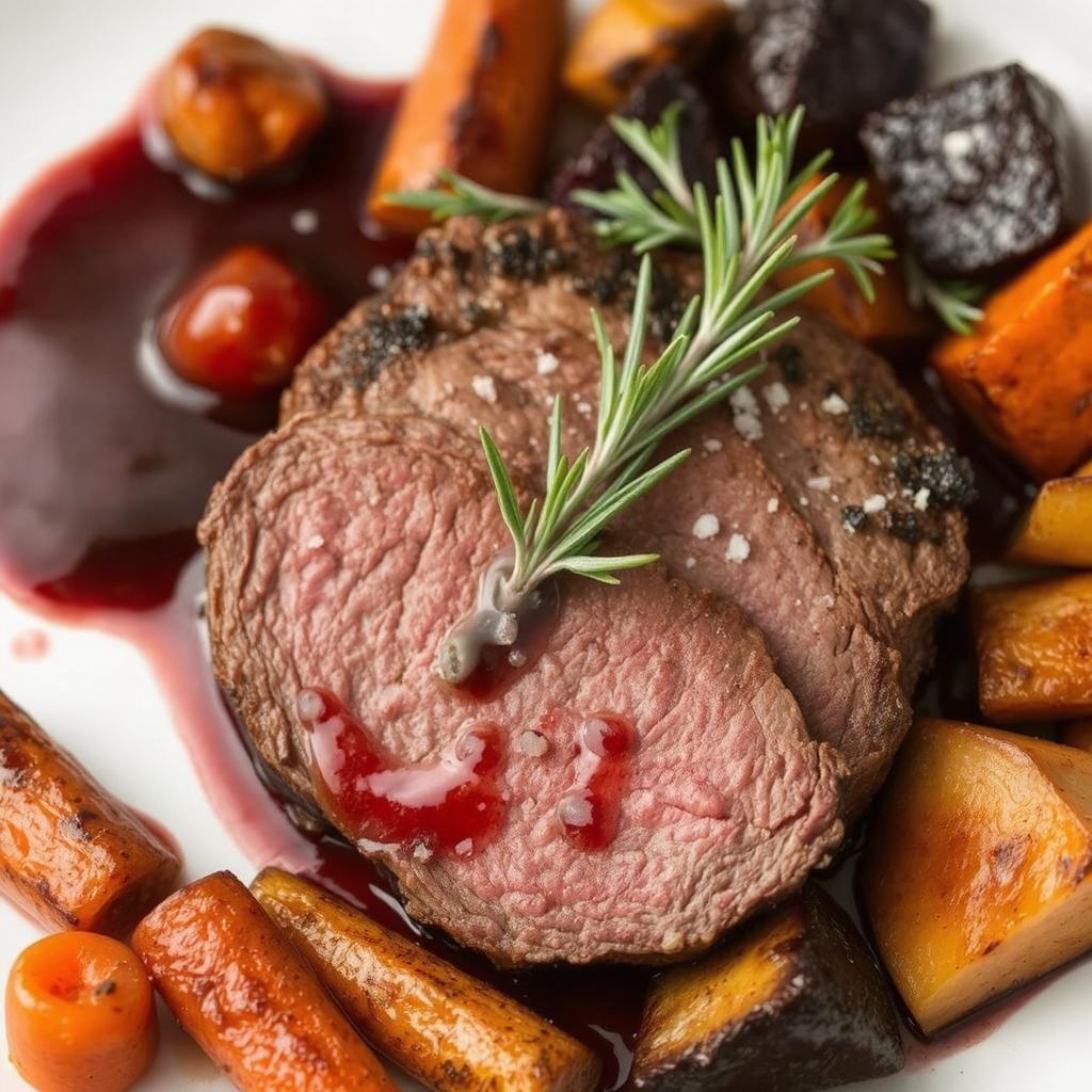 Indrefilet av storfe har lenge vært regnet som en av de mest eksklusive kjøttstykkene. Den er mør, saftig og krever minimalt med krydder for å skinne. Denne typen rett har sine røtter i fransk kokekunst, der man kombinerer perfekt stekt kjøtt med en fyldig saus, ofte basert på rødvin. I Norge har vi lenge elsket en god biffmiddag, og den passer perfekt når man vil gjøre litt ekstra stas på en spesiell anledning. Jeg synes kombinasjonen av saftig indrefilet, fyldig rødvinssaus og sødmen fra ovnsbakte rotgrønnsaker gir en fantastisk balanse mellom smak og tekstur.