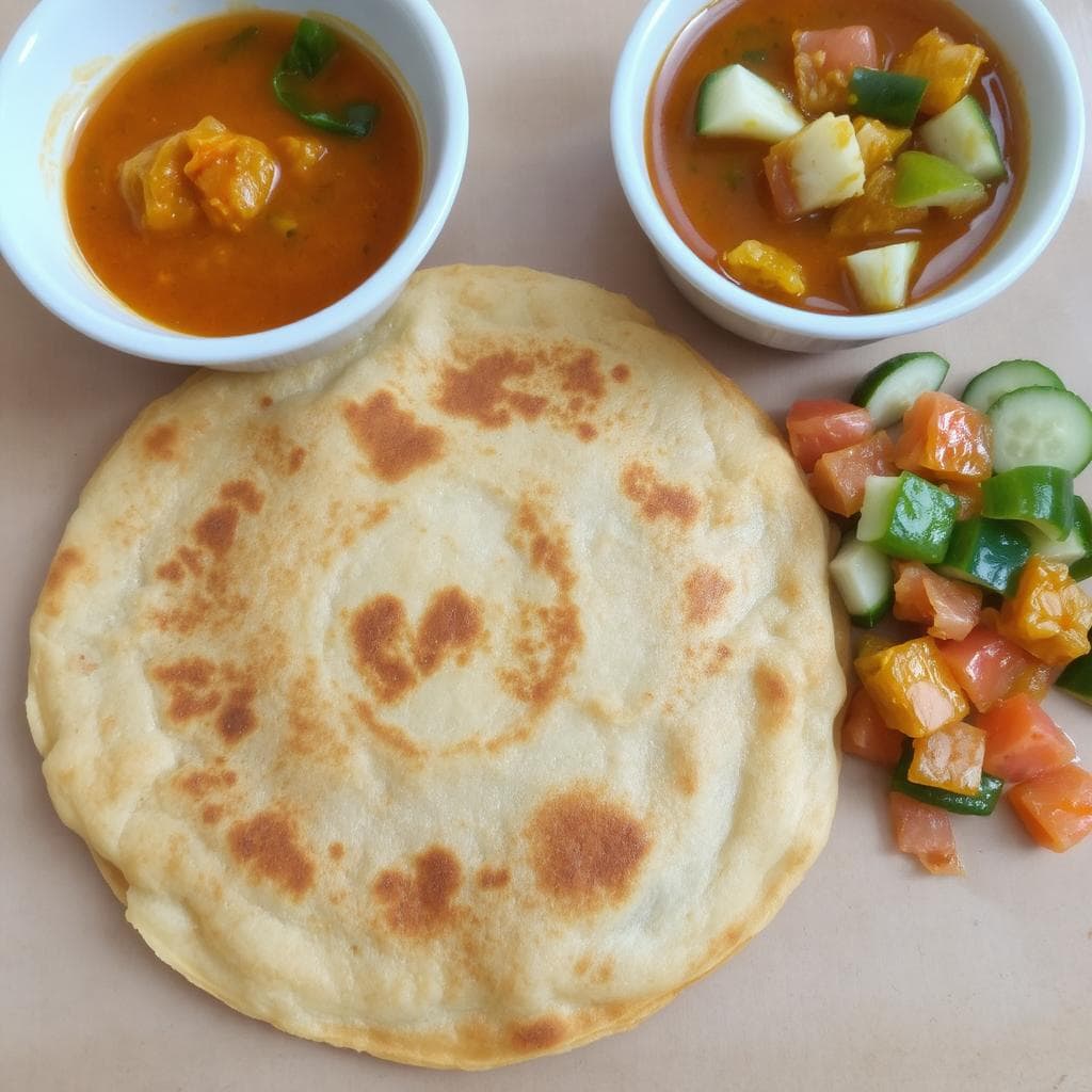 Roti Canai er et populært flatt brød som stammer fra Malaysia, med røtter i indisk matlaging. Det har blitt en favoritt blant både lokale og turister takket være sin sprø utside og myke, lagdelte innside. Navnet “Canai” kan referere til den spesielle metoden for å flate ut deigen eller muligens byen Chennai i India, hvor retten antas å ha sitt opphav. Retten serveres ofte med karri eller dhal og nytes som en del av både frokost og snacks. Roti Canai er ikke bare mat, men også en del av den malaysiske kulturarven.