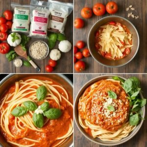 Jeg husker første gangen jeg prøvde å lage plantebasert pasta – jeg var litt skeptisk, men resultatet var virkelig en positiv overraskelse. Pastaen ble ikke bare smakfull, men også full av gode næringsstoffer! Jeg elsker å eksperimentere med forskjellige krydder i tomatsausen, og chili gir virkelig retten et spennende kick. For meg er dette en perfekt rett når jeg vil lage noe som både er sunt og smakfullt, men uten å bruke mye tid på kjøkkenet. Jeg pleier alltid å servere denne retten med en frisk salat og noen ristede nøtter for ekstra crunch.
