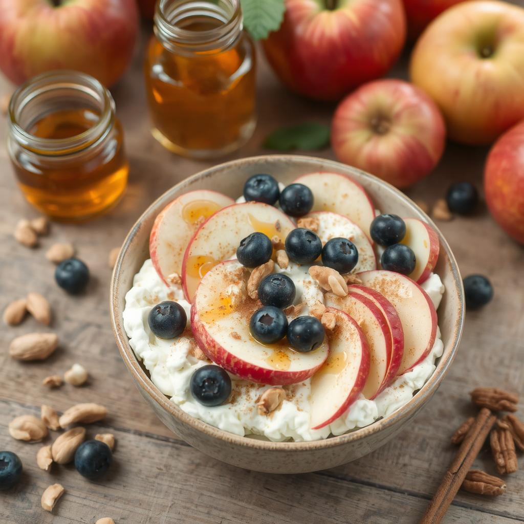 Denne retten gir en perfekt balanse av smaker og teksturer. Cottage cheese gir en kremet og lett syrlig base. Epler og blåbær tilfører friskhet og sødme. Nøtter gir en sprø tekstur og et hint av jordlige smaker. Et dryss kanel setter prikken over i-en med sin varme og krydrede aroma. Hver munnfull er en opplevelse av kontraster – mykt, friskt og sprøtt. Retten er også lett og næringsrik, noe som gjør den perfekt til både hverdag og spesielle anledninger.