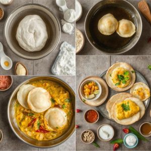Puri, små, friterte flattbrød, er en av de mest elskede rettene fra det indiske kjøkkenet. Kombinert med potetmasala, en krydret potetrett med smaker fra gurkemeie, spisskummen og karri-blader, skaper denne duoen en smakfull og tilfredsstillende opplevelse. Retten er populær som frokost eller lunsj og serveres ofte under spesielle anledninger og festivaler. Jeg elsker Puri med Potetmasala for dens perfekte balanse mellom den sprø purien og den varme, krydrede potetfyllet.