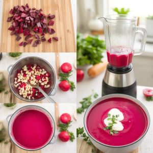 Rødbetesuppe har vært en klassiker i både nordisk og øst-europeisk matlaging i generasjoner, ofte kjent som borsjtsj. Denne raske varianten er en moderne løsning for travle dager, samtidig som den bevarer den dype smaken og næringsverdien. Bruken av ferdigkokte rødbeter gjør retten utrolig enkel å lage uten at det går utover den autentiske følelsen. Jeg elsker hvordan denne suppen bringer sammen tradisjon og effektivitet – perfekt for alle som ønsker en sunn og smakfull middag på kort tid.