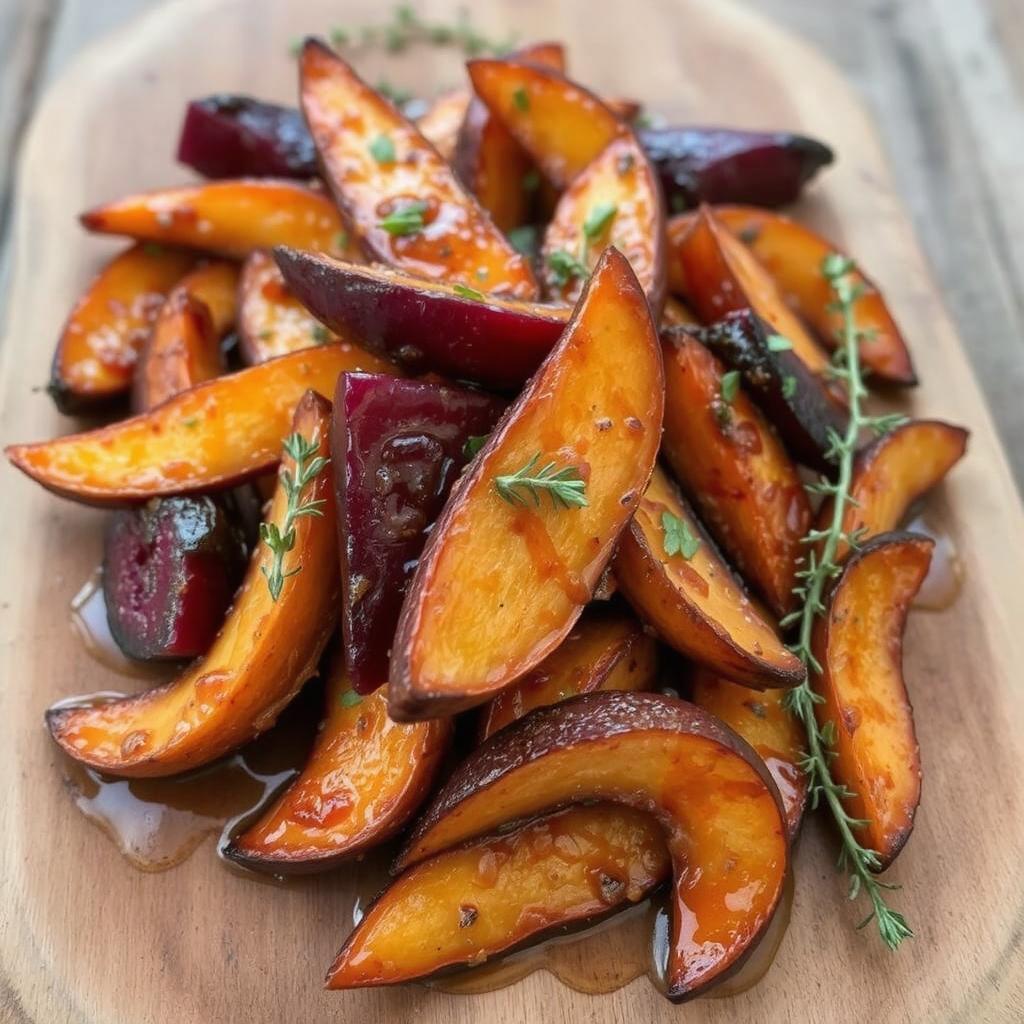 Rødbeter har vært brukt i tradisjonelle kjøkken i mange kulturer, kjent for sin sødme og dype smak. Når de ristes i ovnen, frigjøres deres naturlige sukker, og med en honningglasur får de en karamellisert overflate som gjør dem til et luksuriøst og næringsrikt tilbehør. Denne retten er både enkel og elegant, og jeg elsker hvordan den løfter middagen med sin balanserte smak og vakre farge.