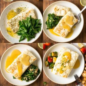 Spinaten tilfører en lett bitterhet som gir kontrast til den rike sausen. En lett knasende tekstur fra friske urter eller ristede pinjekjerner på toppen gir en ekstra dimensjon til retten. Den milde torsken, den silkemyke sausen og den friske spinaten skaper en harmonisk balanse.